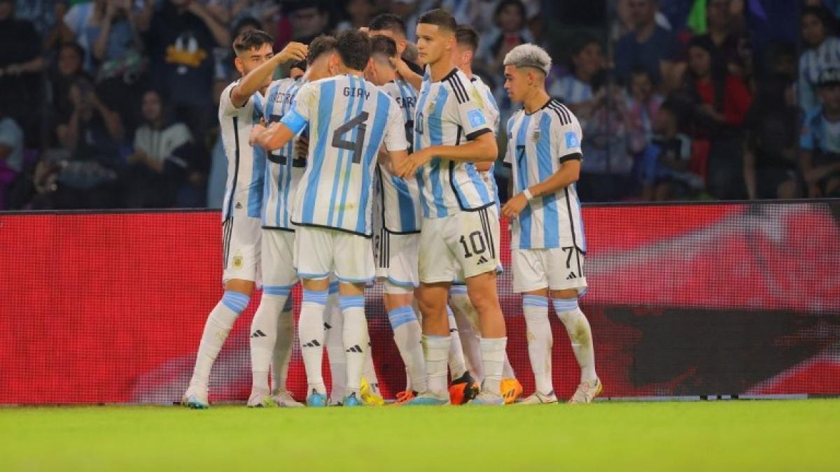 El volante del Manchester City, Máximo Perrone, puso el 3 a 0 final de la goleada del la Selección argentina ante Guatemala por la segunda fecha del Grupo A del Mundial Sub 20 en el estadio Madre de Ciudades de Santiago del Estero.