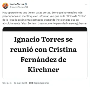 De esta manera, el gobernador chubutense expuso una de las maniobras recurrentes del Gobierno nacional de instalar temas a través de las redes sociales, por medio de cuentas libertarias, que son replicadas en medios de comunicación.
