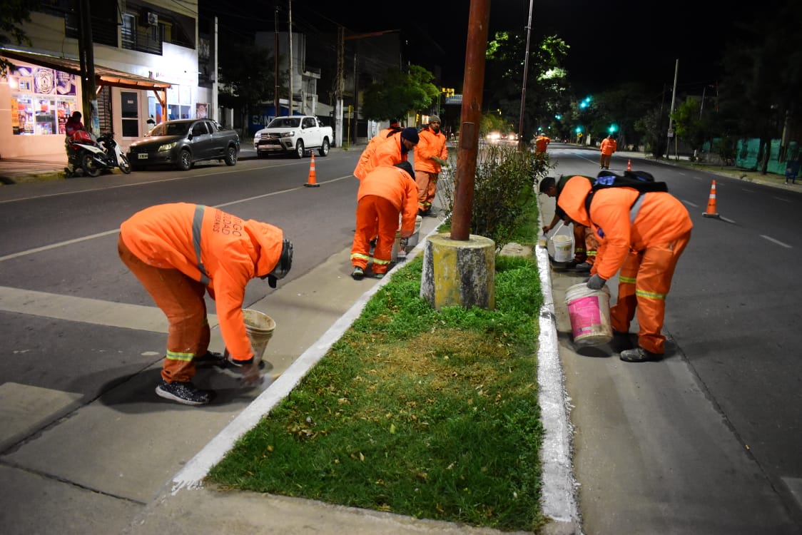 Personal de Servicios Urbanos de la Municipalidad de la Capital realizó trabajos de pintura de los cordones de la platabanda de la avenida Belgrano.