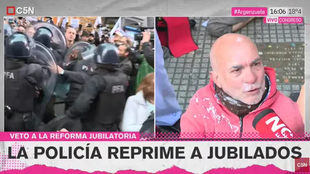 En tanto, otro jubilado sostuvo: «La Policía reacciona porque le pagan para eso y tienen buen sueldo, nosotros no tenemos para comer, pero a ellos les sobra». Mientras varias personas eran entrevistadas, la cámara mostró cómo un gran número de ancianos estaban siendo asistidos tras la brutal represión con palos y gas pimienta.