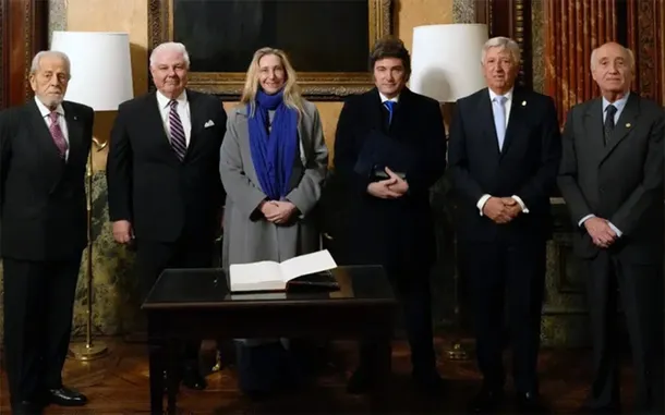 Además de los Milei y de Villar Urquiza, del encuentro también participaron el vicepresidente del Jockey Club, Guillermo Strada, y otras autoridades de la entidad anfitriona: Agustín Monteverde y Urbano Díaz de Vivar, quienes no se perdieron la foto con el Presidente.