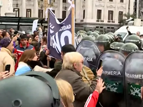 Los efectivos de seguridad avanzaron sobre los manifestantes que repudian el veto de Milei frente al Parlamento, pero luego se retiraron.