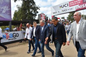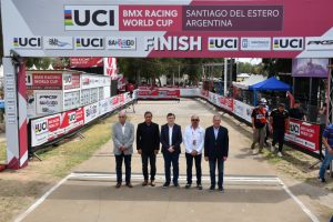 El Gobernador Gerardo Zamora junto al Jefe de Gabinete de Ministros, Elías Suarez, participó de la primera jornada de la Copa del Mundo UCI BMX Racing 2025, que se desarrolla del 20 al 21 de septiembre en la pista la Catedral del BMX del Polideportivo provincial, convocando a 300 pilotos de 26 países.