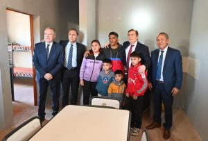 El recorrido inaugural comenzó por el domicilio de Gissela Comán, donde se realizó el corte de cintas y la entrega simbólica de llaves a las 12 familias beneficiadas por el programa ejecutado a través del Ministerio de Desarrollo Social, y que en este caso contó con la colaboración de la Municipalidad de Campo Gallo.