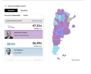 En la Ciudad de Buenos Aires, La Libertad Avanza obtuvo el 47,42%, Fuerza Patria el 26,90% y el Frente de Izquierda el 9,09%.
