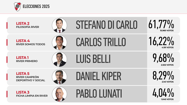 En medio de la reciente crisis futbolística que atraviesa el equipo de Marcelo Gallardo, los socios River votaron este sábado 1º de noviembre a sus nuevas autoridades en unas elecciones que contaron con participación récord y en las que se impuso la lista oficialista de Stefano Di Carlo.