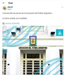 La Asociación del Fútbol Argentino emitió un nuevo comunicado de prensa, como respuesta a la campaña mediática que inició el Grupo Clarin, La Nación, el ministro Cuneo Libarona y el empresario Guillermo Tofoni y el Gobierno Nacional, quienes fueron señalaos como los «motrizadores» del ataque mediático contra la AFA y sus directivos.