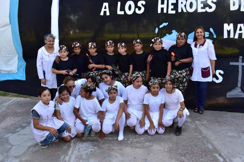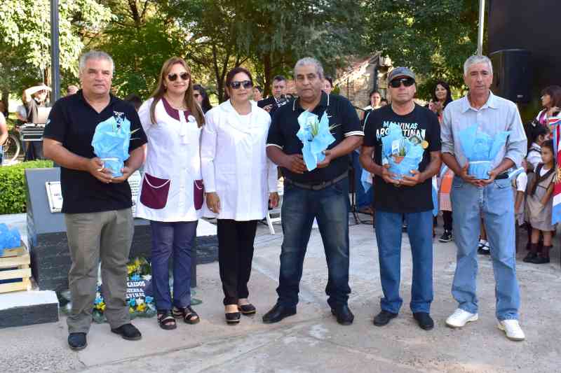 La comunidad educativa hizo entrega de presentes a los héroes de Malvinas y los alumnos de las escuelas organizadoras realizaron expresiones artísticas representando los momentos históricos del conflicto bélico del año 1982.