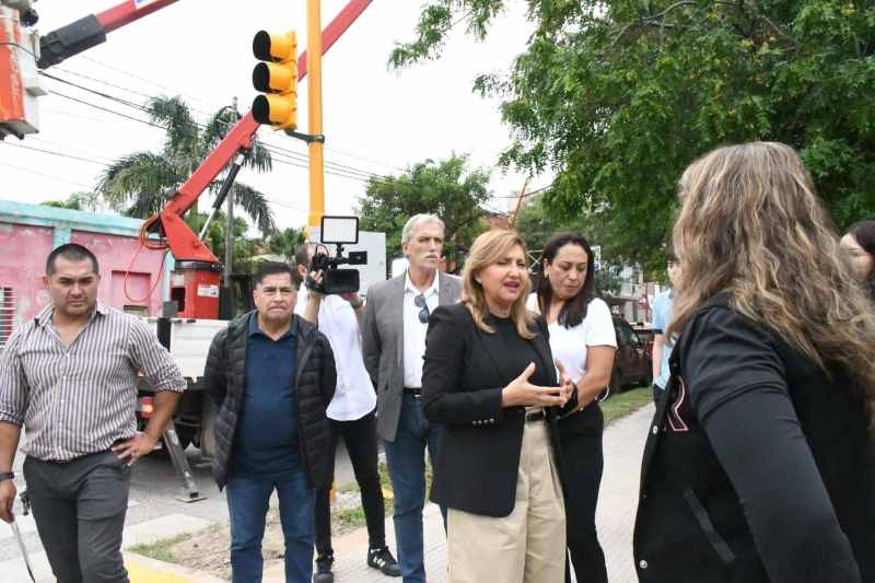 La intendente, Ing. Norma Fuentes, supervisó la instalación de nuevos semáforos en la esquina de las calles Libertad y Santa Fe, con el objetivo de mejorar la seguridad vial y optimizar la circulación del tránsito. Acompañada por alumnos y docentes de instituciones educativas de la zona, la jefa comunal destacó la importancia de fortalecer el plan integral de ordenamiento urbano, orientado a reducir riesgos y brindar mayor protección tanto a peatones como a conductores. «Inicialmente, funcionarán con luz amarilla intermitente para facilitar la adaptación de quienes circulan por estas arterias,…